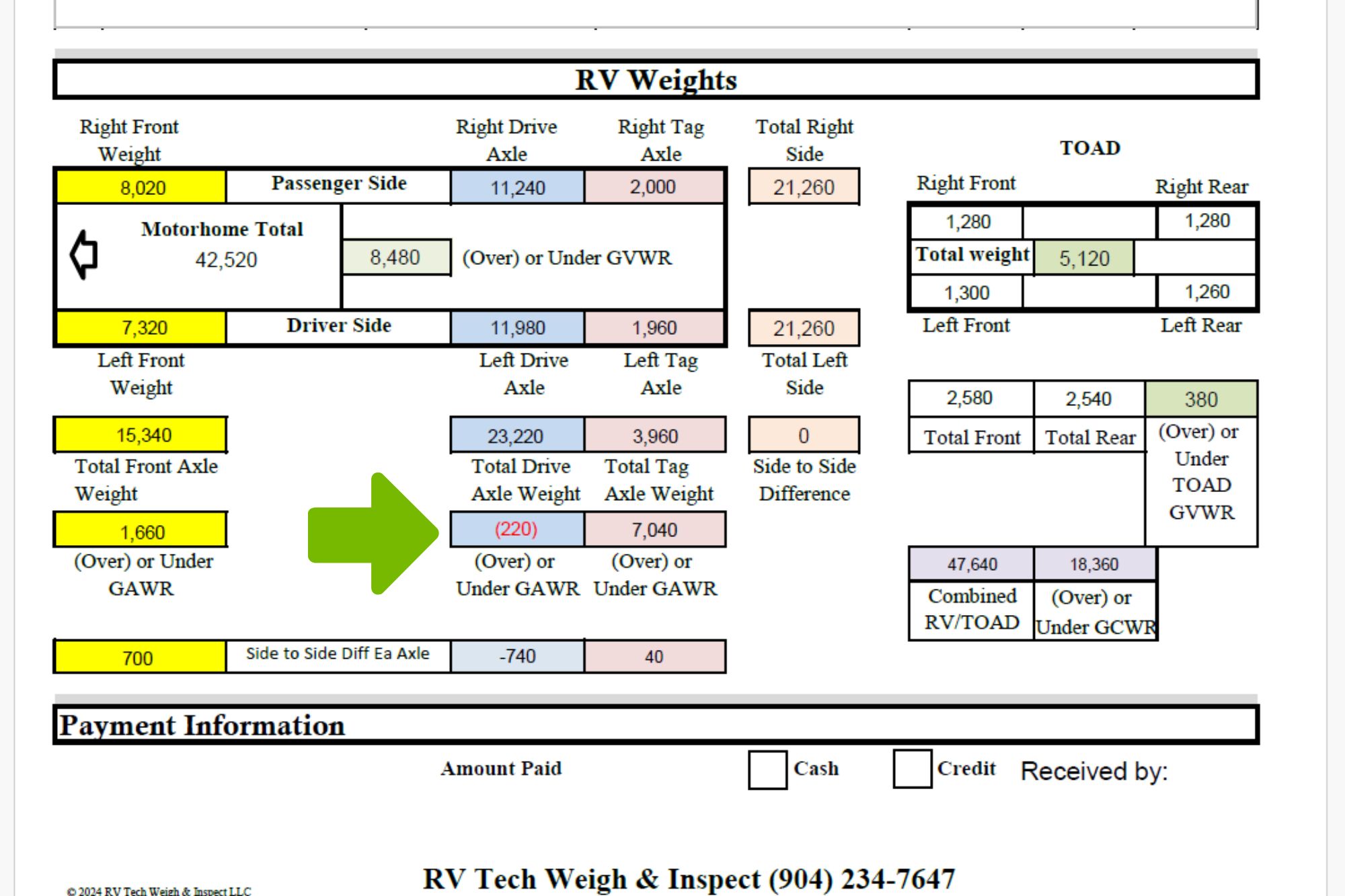 At RV Tech Weigh & Inspect, we provide mobile four-corner weighing services that help RV owners understand how their rig is actually loaded.